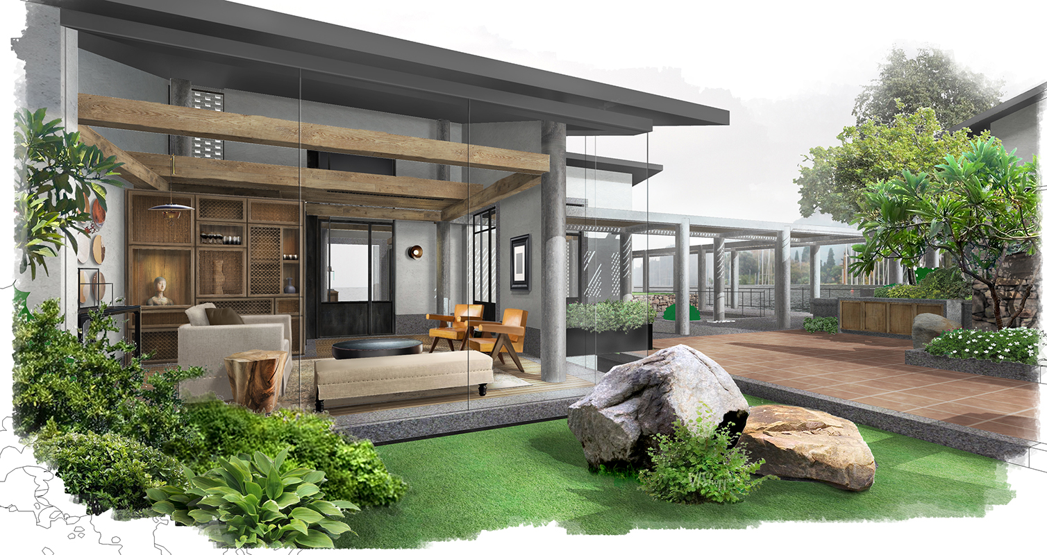 and rattan are selected toecho the hues of flowers and the earth,while